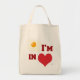 A cheeky fun Fried Egg I’m in love awesome breakfast desire design classic fun morning meal not scrambled bacon or sausage worthy morning meal grocery style deluxe carry all canvas tote bag. Get a fun fried egg tote today.