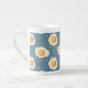 A pattern from fresh fried eggs on a sky blue background. Good morning breakfast :)