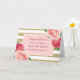 Congratulations on your wedding day card for friend and her husband with gold glitter stripes and watercolor pink flowers, and sentimental verse.