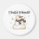 Cute and somewhat humourous holiday greeting cards, Tshirts, mugs, and more with an adorable snowman, snowflakes, and text that reads "I build friends!".