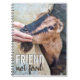 This notebook features a fun friendly goat who asks for cuddling from a human friend. The words "Friend not food" are printed below in white and brown.