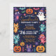 Get ready to party with this "Spooktacular" Halloween birthday invitation! The design features a lively cast of cartoon characters—a friendly ghost, a crew of mischievous cats, and grinning jack-o'-lanterns—set against a starry, midnight blue background. The vibrant colour palette of purples, oranges, and teals creates a playful, enchanting scene that’s perfect for a children’s birthday celebration. This customisable design captures all the spooky fun without the fright, making it an unforgettable way to invite guests to a magical birthday event.