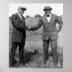 Tut Jackson (left) and Jack Johnson shaking hands. LOC Summary: Competitors for the "worlds coloured boxing heavy weight championship" meet in Ohio prior to their bout. Photograph taken in 1922.
