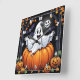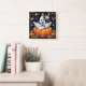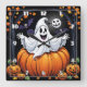 Friendly ghost celebrating Halloween in a pumpkin Square Wall Clock