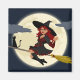 On this item you see a beautiful friendly witch waving. She is flying in the air on a broom, together with her black cat.