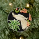 Original fine art design of a lutino cockatiel in an Australian Gum tree by designer Carolyn McFann of Two Purring Cats Studio on a quality holiday ornament for parrot lovers.