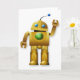 Robots can be friendly as this design proves. This design is a friendly robot that is standing and waving. The robot is gold and has a green button on its chest and green eyes. This friendly robot design looks great on these greeting cards