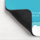 A bright and vibrant turquoise mousepad tailored to the airline pilot, flight instructor, or aviation engineer. It features a bright turquoise theme with a miniature aeroplane soaring over clouds on the bottom edge. Next to this miniature plane and above the clouds is the recipient's name in white. It works as a fun and thoughtful gift for someone who works in or loves the business of aviation.