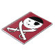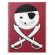 Friendly Smiling Pirate with Crossed Swords on Red Notebook