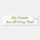 Are you and your friends a little wild and crazy? Then you'll love this funny bumper sticker! Text is My Friends Are All Crazy Too.