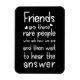 Friendship quote typography in black and white "Friends are those rare people who ask how we are and then wait to hear the answer"