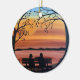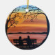 Silhouette couple sitting on a bench, enjoying conversation and a sunset