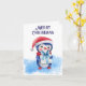 Merry Christmas greeting, cute blue and white penguin standing on ice and holding a wrapped gift is featured on this 4"x5.6" Christmas card. Minimal matching elements are inside and on back. The elegant script is a dark blue. Easily change add-to or remove text on front, inside (co-worker) and back to make it yours using the Template provided. White envelope is included or mark "none" for reduced price. Also available in 5"x7" size. See "About This Product" at side for more information.
