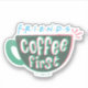 This graphic features the FRIENDS™ logo and the text, "Coffee first."