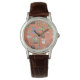 I like the illustrative watch with the lady on it. It is a great reminder that I am blessed and it has a very sturdy leather band. The colors are true and vibrant. Love the color of the Leather also. Very nice.