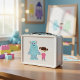 This is a standard metal lunchbox that appears to work just fine. We designed this box ourselves with an uploaded photo and custom text on the front and back. It looks absolutely beautiful except the front of the lunchbox is not centered like it shows in the photo. The print borders don't align with the inset flat part of the box where the preview photo online showed it perfectly centered in there. The back looks nice and centered though.