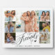 Modern photo collage typography plaque features 7 photos and elegant script ''friends'' and names. Perfect gift for your bff.