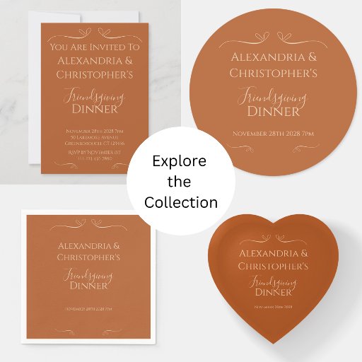 This is an elegant and chic, Friendsgiving Dinner design. This modern design is in trending fall colours with stylish typography. It has space for you to add your names and Friendsgiving Dinner information on the front, framed by stylish heart swirls. The main dinner party destails are also repeated on the back. This elegant and modern design is perfect for your Friendsgiving Dinner or celebration. To personalise, simply add your details by using the personalise this text box. Here you can also change the rest of the text if you want to. To change the colour or font, check out the design editing tool. If you need help with personalisation, matching products, or for a custom design contact me via zazzle chat or email: ursuladawnmoon@gmail.com