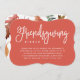 Invite your friends to your version of Thanksgiving dinner with these stylish invitations! A rich, terra cottta colour background features white modern handwritten script typography. The back of the Thanksgiving invitation features a lovely fall leaves pattern.