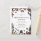 The postcard front contains a modern and rustic Friendsgiving invitation. Deep golden yellow and purple fall leaves and blackberries create a minimal botanical frame around your Friendsgiving dinner details. The back of the postcard invitation has a simple autumn leaf sprig and Friendsgiving is again written in a large decorative text. There is a space for your personal message. Your return address is included for your convenience. All of the text is editable.
