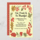 A potluck dinner invitation for friends' Thanksgiving. Or a Friendsgiving celebration. Light yellow background on the front and a decorative burnt red background on the back. This holiday feast can be any time of the year, usually the weekend before the holiday. Many enjoy Thanksgiving Day with friends. Personalise this template with your information. Customise it further to make more changes.
