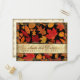 Invite your Friendsgiving dinner guests in style with this elegant invitation postcard. This design features a pattern of autumn leaves in red, rust, and gold on a black background. The front of the card has a faux gold banner which reads, "Save the Date, Thanksgiving 20XX". The back of the postcard has all of your party details for you to personalise. Designed by world renowned artist ©Tim Coffey.