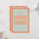 Gather your favourite friends and host a Friendsgiving Feast With Friends. Modern and simple orange Thanksgiving invitation. Easy to read includes a fall leave and modern typography text. Happy Friendsgiving!