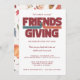 Friendsgiving Thanksgiving gathering party invitation to invite your friends and neighbours to celebrate Thanksgiving with a potluck. Customise with your party details. Friendsgiving is the name given to a Thanksgiving celebration that is spent with friends, co-workers and neighbours instead of the traditional family gathering.