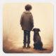illustration showing the back view of a boy and a dog.Poster featuring an illustration representing the theme of friendship between a boy and his dog.
