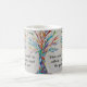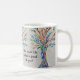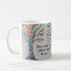 This decorative coffee mug features a mosaic tree in rainbow colours and a friendship message.
