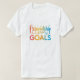 Friendship Goals" printed on a t-shirt in a rainbow of vibrant colours, designed for casual wear.