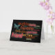 A black background serves to make words pop out in this friendship card. Words that friends would share such as laughter, sharing, confidant, good times, fun times, rolling on the floor laughing, best friend, wonderful memories and more make a splendid note card to send to that best friend. Some of the words have a "glowing" shadow to make the content stand out more, and a blue butterfly in the top left corner is a beautiful graphic to complete the sentiments.