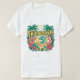 The t-shirt design features the phrase "Friendship Oasis" in bold, colourful letters. It's surrounded by tropical elements like palm trees, flowers, and a sandy desert landscape. The overall impression is one of warmth, friendship, and a relaxing, inviting atmosphere.