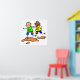 Cute cartoon whimsical illustration of two happy little boys from different ethnic backgrounds playing together in the mud. Easily customise and choose your own background colour or add text. Image available on various gifts and products.