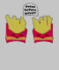 Two cartoon fries containers are smiling, with one of them saying, "Fries before guys!!". The colourful and playful design adds a humourous and light-hearted message.