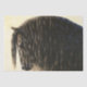 Black Friesian horse with a long wavy mane showing warm yellow highlights from late afternoon sunlight.