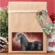 This piece of art features a black Friesian stallion horse with a luxurious long and wavy mane. Surrounded with a smoky background in shades of red and brown.