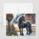 This Christmas postcard showcases a stunning black Friesian horse standing beside a post adorned with a festive wreath. The scene is set against a backdrop of snow-covered ground and a red barn. This makes it an ideal selection for any horse enthusiast or Friesian horse owner. "AI-generated artwork with design direction by Susang6"