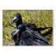 A courting couple of Magnificent Frigatebirds sit on a nest on North Seymour Island in the Galapagos Islands of Ecuador. The female expresses her displeasure at the lack of privacy on their honeymoon. The male has a red neck (gular) pouch, which he inflates while flying to attract a female. Since he's found his lady love, his pouch is now deflated. Frigatebirds are very lightweight for their size so they can sit on shrubs, unlike heavier birds. Because this bird likes to steal food from other birds, it has been named after the pirate frigate ships of old. The bird can't swim, has short legs making it difficult to walk and has little protective oil on its feathers so it avoids getting wet. It snatches food from the surface of the ocean with its curved beak avoiding the water. Having the largest wingspan-to-body-weight ratio of any bird, they are mostly aerial, able to stay aloft for long periods, landing only to roost or breed on trees or cliffs.