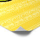 A yellow-green friggitello chilli pepper, also known as a Greek golden pepper or, in the US, pepperoncini when pickled, is decorated with patterns inspired by designs on ancient Greek amphorae and sits on a yellow background with a smaller version of the same pattern and a script label in the corner. This mild pepper was originally cultivated in Italy and is eaten throughout Europe and the United States.