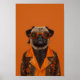 This quirky and stylish artwork features a charming pug dressed in a steampunk-inspired leather jacket, accented with Halloween-themed designs in vibrant orange and black. The pug's playful expression is enhanced by its retro goggles and the adorable spider sitting on top its head, giving it a mix of cute and edgy. The bright orange background adds a bold pop, making this piece perfect for anyone who loves dogs, steampunk fashion, or unique Halloween themed decor. This print will bring character and a dash of humor to any space.