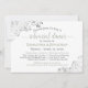 This beautiful rehearsal dinner invitation is both simple and elegant. It features sage green and grey text on a white background with lacy silver faux foil frills or filigree in the corners. It has information on both the wedding rehearsal as well as the celebratory dinner that follows. Perfect for keeping the bridal party informed about all of the pre-wedding festivities.