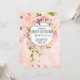 A lacy, floral pinkish backdrop with a decorative wreath that has butterflies, leaves, and fine lace adorning it along with a swirly ornate design framing it completes this frilly girly birthday invite. Enchanting