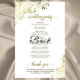 These wedding programs are elegant and tasteful, while still being budget friendly. The design features ornate golden faux foil curls and swirls with gold text on a white background. The typography features lacy script calligraphy, and there is room for details on the ceremony, the bridal party, and a short thank you.