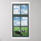 Frisian Holstein Cows Faux Window View Poster Print. A rural farm window view poster print with cows in a green meadow landscape and a clouded spring sky photography poster print. This beautiful rural view poster is fully customisable, add your texts and images! A great Frisian Holstein cow farm animals landscape faux window view landscape gift poster to hang on your wall at home in the basement or in the office for your best friend or family member!