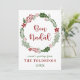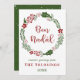 Green and red Christmas holiday wreath holiday card, with the words Merry Christmas in Friulian: Bon Nadâl.