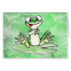 Here's a friendly frog, sticking out his tongue, sitting on a lily pad. This cartoon design was created with watercolor, coloured pencil and ink.