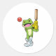 Frog at Cricket with Cricket bat Classic Round Sticker
