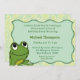 Cute Green frog Birthday Party invitation with a leaf background. Customise with your party details.