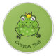 Green frog cartoon with golden crown. Prince frog. Custom background colour. Custom text.